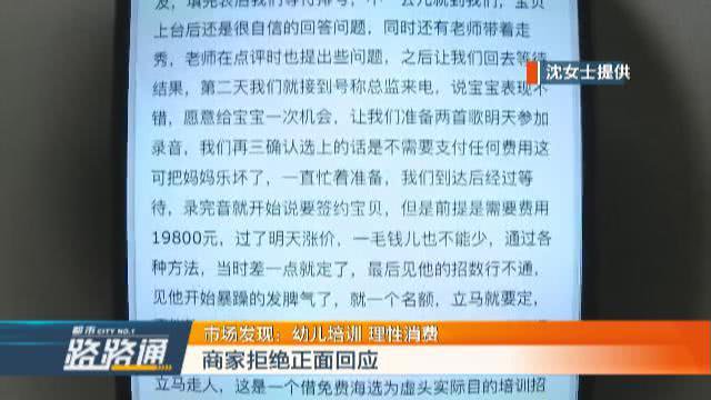 沈女士說,通過海選,她的兒子是成功的被選上了,隨后這培訓(xùn)機構(gòu)就開始讓她交報名費了。報名費一共是花了16800元。可是沈女士在交完錢后,卻很快后悔了,因為她覺得消費者對這家公司的評價,并沒有他們宣傳得那么好。