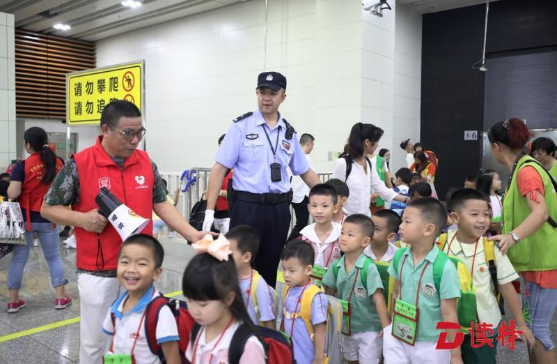 邊檢民警與深圳義工在福田口岸出境大廳悉心呵護跨境學童安全快捷通關。黃俊生攝