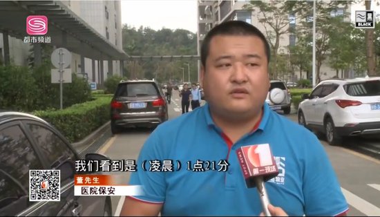 值班保安緊急通知了醫(yī)院警務(wù)室民警,并在差不多相同的時(shí)間趕到了事發(fā)病房了解情況,并第一時(shí)間查看病房監(jiān)控。在醫(yī)院樓下,記者見到了昨晚值班的保安之一董先生,他也證實(shí)了劉女士的說法。