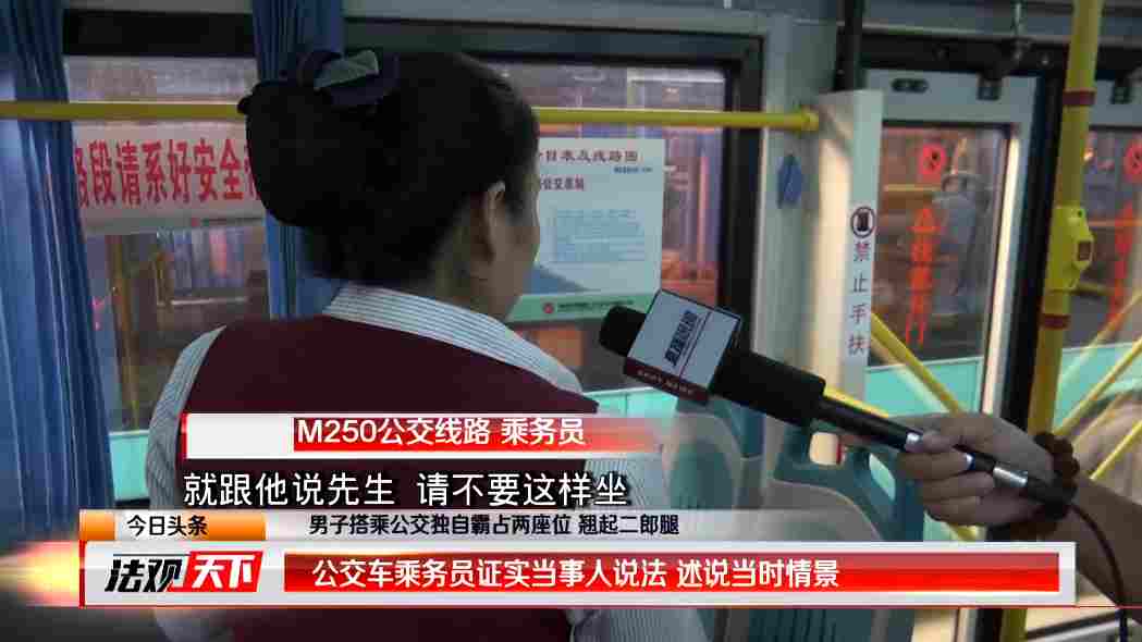 西部公汽M250線路乘務(wù)員和記者說到:當(dāng)時(shí)我發(fā)現(xiàn)他這樣坐以后,就跟他說先生,請不要這樣坐,然后可以給別的乘客讓個座位,當(dāng)時(shí)他就有點(diǎn)很不友善地說,你要干嘛,你要干什么。