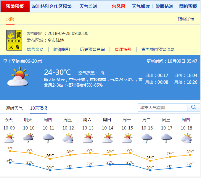 深圳新聞網(wǎng)訊 鵬城昨日持續(xù)晴朗干燥的天氣,局部出現(xiàn)零星小雨。市氣象臺(tái)預(yù)測,今日維持晴好天氣,明起受冷空氣影響,偶有小雨,氣溫回落。近來天氣持續(xù)干燥,市民應(yīng)注意防火安全。