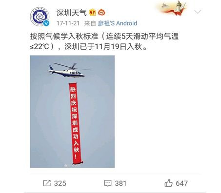 雖然深圳積極嘗試了入秋,但這場(chǎng)弱冷空氣并不妨礙深圳入秋失?。∫?yàn)榘礆夂驅(qū)W劃分標(biāo)準(zhǔn):以5天滑動(dòng)平均氣溫穩(wěn)定 ,22 ℃才是秋季的開(kāi)始。深圳平均入秋時(shí)間在11月3日,去年更是在11月19日才入秋成功。