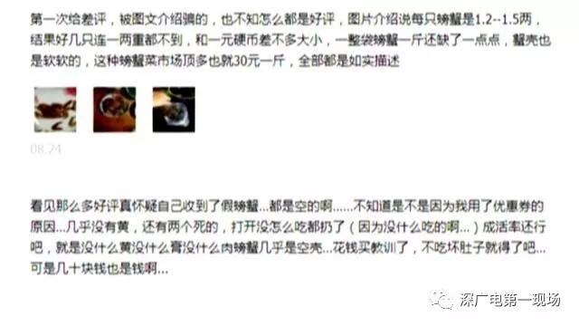 除了短斤缺兩、收到死蟹等,還有消費(fèi)者稱,在電商平臺上買了大閘蟹禮品券,提貨時(shí)卻遇到賣家的推脫,根本提不到蟹。為此業(yè)內(nèi)人士表示,消費(fèi)者在購買大閘蟹禮券時(shí),要時(shí)刻"提防",小心落入不良商家虛假宣傳的套路!