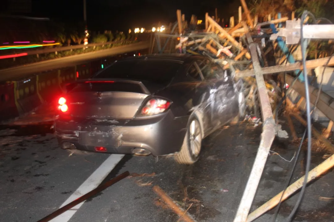 執(zhí)勤民警接報后立即前往龍崗區(qū)長深高速3655KM往鹽田方向路段(高速路)處理事故,現(xiàn)場發(fā)現(xiàn)肇事粵B牌小車駛進了高速公路右邊的施工區(qū)域撞上了鐵管,氣囊爆開,擋風(fēng)玻璃被鐵管直接刺穿,車輛損毀嚴重。