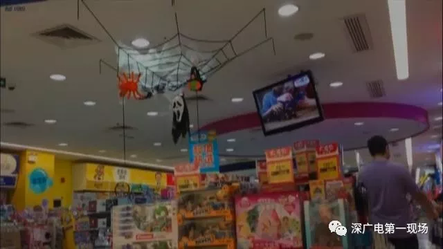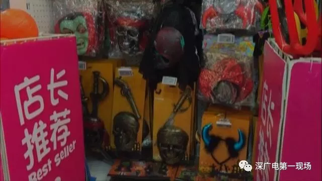 溜冰場(chǎng)工作人員:“就是萬(wàn)圣節(jié)鬼節(jié)嘛,掛這些東西小孩們可開(kāi)心了,還有小孩爬上去拽那些玩意,不會(huì)嚇到的,來(lái)滑冰的顧客臉上都會(huì)化妝扮鬼?!?/p> 玩具賣(mài)場(chǎng)萬(wàn)圣節(jié)道具花樣多 魔鬼面具熱銷(xiāo)