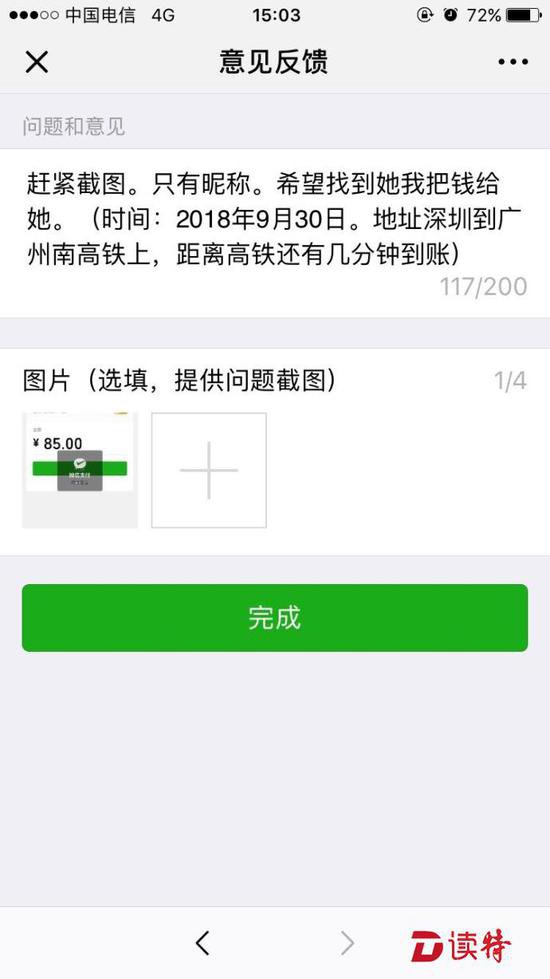 這位看上去是位90后的女孩沒有猶豫,當(dāng)場掏了掏口袋,把剩下的85元現(xiàn)金全部借給了李先生。就在李先生拿起手機(jī)掃了女孩的收付款的支付碼后,女孩就著急地說,火車要到站了,她要下車,就匆忙去了后面的車廂。