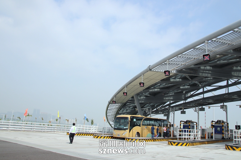 一輛穿梭巴士經(jīng)過(guò)港珠澳大橋珠海收費(fèi)站