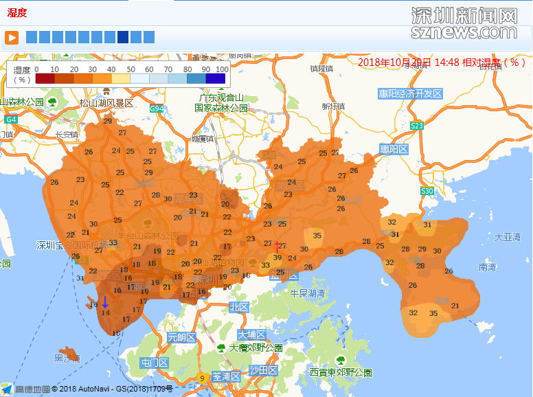 深圳新聞網(wǎng)10月29日訊(記者 陳婕)29日,深圳市最高氣溫直逼30度,與此對應的是,今日最低相對濕度24%,比今日歷史最低值25%(1978、1991年)還要干,真叫一個晴朗干燥。