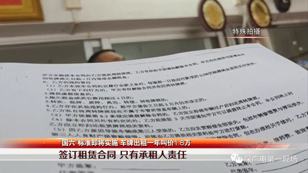 記者調(diào)查發(fā)現(xiàn),租深圳車(chē)牌成了很多外地車(chē)主,應(yīng)對(duì)“國(guó)六”標(biāo)準(zhǔn)落地的方法之一。所謂的租深圳牌,就是將名下的車(chē)登記在有深圳車(chē)牌指標(biāo),還沒(méi)有購(gòu)車(chē)的人名下。
