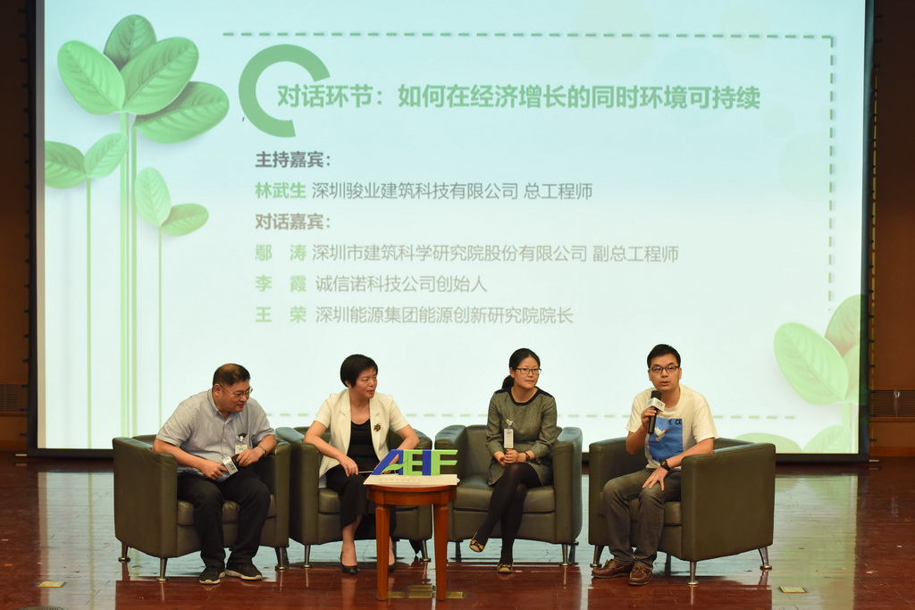 “如何在經(jīng)濟增長的同時環(huán)境可持續(xù)”是10月27日論壇的最后一個對話環(huán)節(jié),由深圳駿業(yè)建筑科技有限公司總工程師林武生擔(dān)任嘉賓主持,來自來自深圳能源集團能源創(chuàng)新研究院的王榮院長、深圳市建筑科學(xué)研究院股份有限公司副總工程師鄢濤、誠信諾科技公司創(chuàng)始人李霞不僅對競賽單元的4個項目以及之前的嘉賓分享內(nèi)容進行了點評和回顧,在介紹各自所在企業(yè)背景的基礎(chǔ)上,還從綠色建筑和清潔能源發(fā)展的角度進行分析,如何在經(jīng)濟增長的同時堅守環(huán)境底限,不做故作綠色的項目,從戰(zhàn)略到細節(jié)思考和實踐具有持續(xù)性的創(chuàng)新設(shè)計。