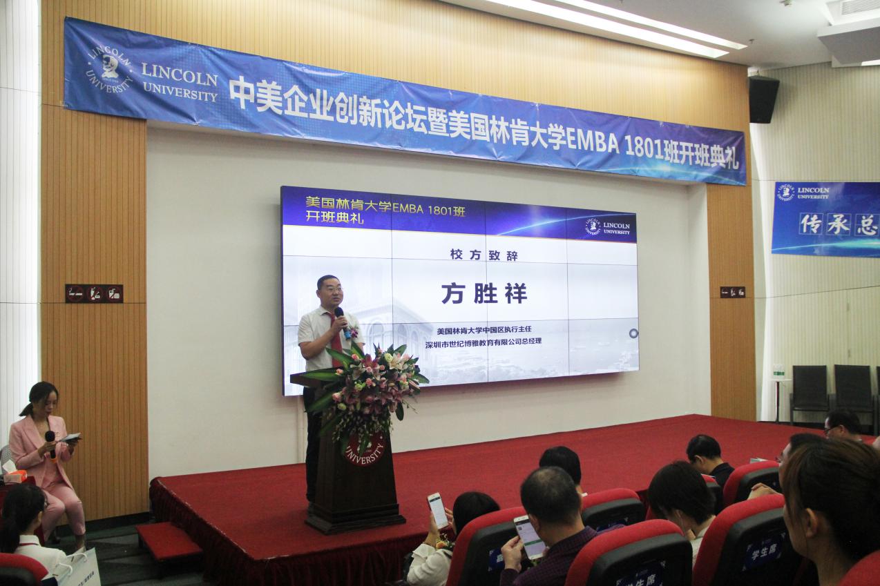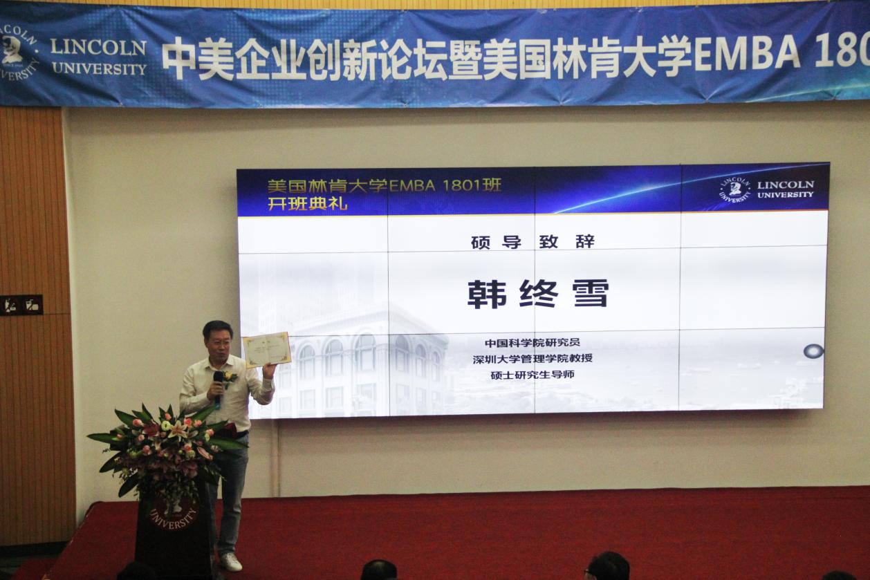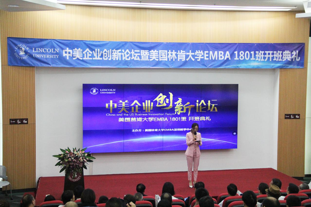 深圳新聞網(wǎng)訊 10月27日上午,由美國(guó)林肯大學(xué)EMBA深圳教學(xué)中心舉辦的《中美企業(yè)創(chuàng)新論壇》暨美國(guó)林肯大學(xué)EMBA1801班開班典禮,在深圳科技園香港科技大學(xué)報(bào)告廳舉行。論壇邀請(qǐng)了美國(guó)林肯大學(xué)校方代表?xiàng)畛缢嚥┦?、方勝祥先生、美?guó)加州州立大學(xué)計(jì)算機(jī)系正教授 陶翼青 、中科院研究員韓終雪教授出席。美國(guó)林肯大學(xué)EMBA1801班的同學(xué)們、來(lái)自深圳教育行業(yè)、中國(guó)企業(yè)家代表 以及 媒體記者等160多位嘉賓 參加活動(dòng) 。