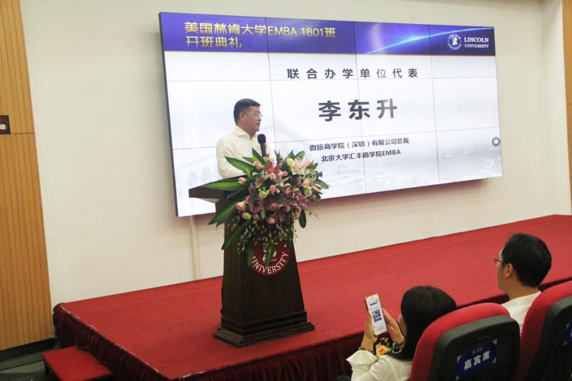 美國(guó)林肯大學(xué)的發(fā)展也離不開合作辦學(xué)單位的支持,聯(lián)合辦學(xué)合作單位代表李東升先生,分享了他就讀EMBA的心得,同時(shí)也對(duì)新教育的理念、新時(shí)代企業(yè)發(fā)展的模式提出了自己的見解。