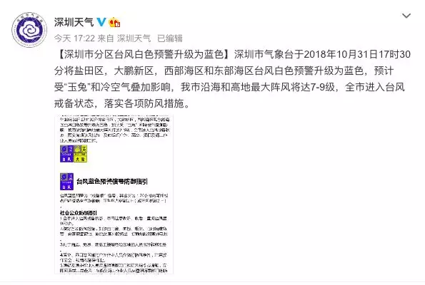 【深圳市分區(qū)臺風(fēng)白色預(yù)警升級為藍(lán)色】