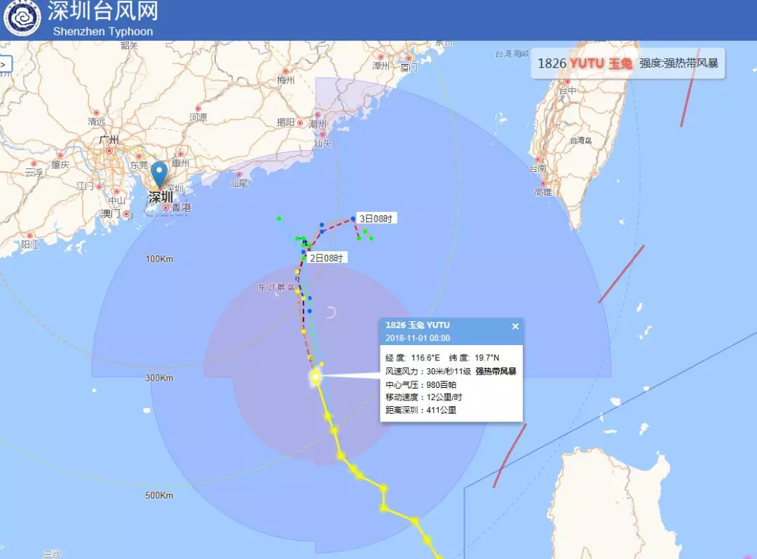 臺風“玉兔”的結(jié)局似乎已經(jīng)注定,但即便它正在減弱,“玉兔”終究還是既有名字又有正式編制的第26號臺風,各位仍然不可掉以輕心!深圳市氣象臺已于2018年10月31日17時30分將鹽田區(qū),大鵬新區(qū),西部海區(qū)和東部海區(qū)臺風白色預(yù)警升級為藍色。