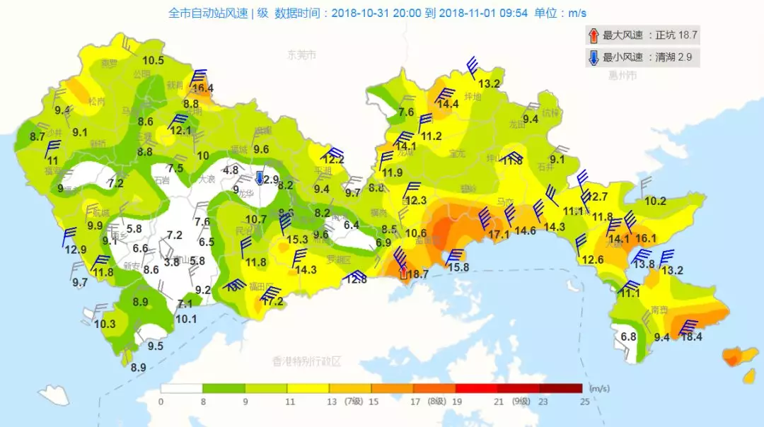 圖4:31日夜間到1日白天全市最大陣風(fēng)分布