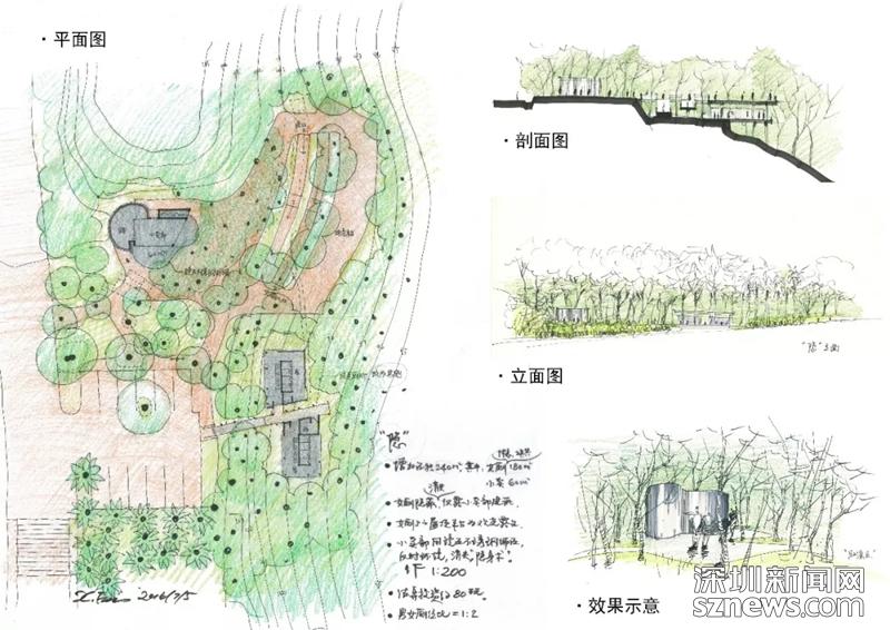 費曉華應公園管理處之邀為山頂公廁設計的改擴建方案之一,隱擴方案(圖紙來自雅本建筑微信公眾號)