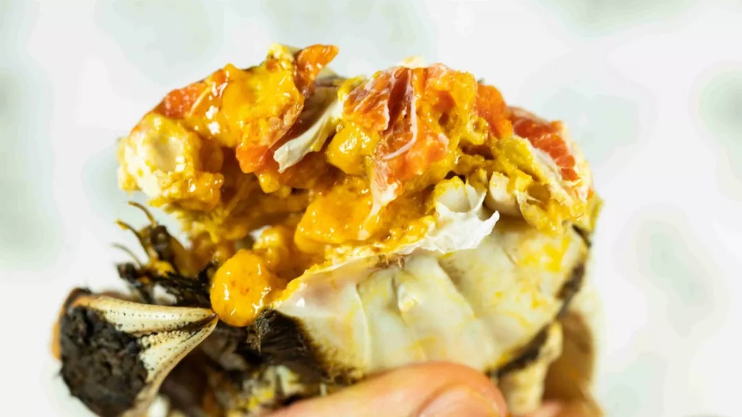 “白肚、青背、黃毛、金爪”,是優(yōu)質(zhì)洪澤湖大閘蟹的檢驗標準。此外,蟹背面有字母“H”的形狀,是洪澤湖蟹的天然“地理標示”。