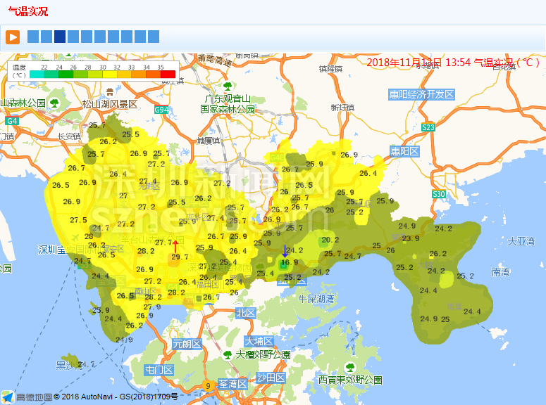 市氣象局發(fā)布?xì)鉁貙?shí)況(數(shù)據(jù)更新于11月13日13:54)