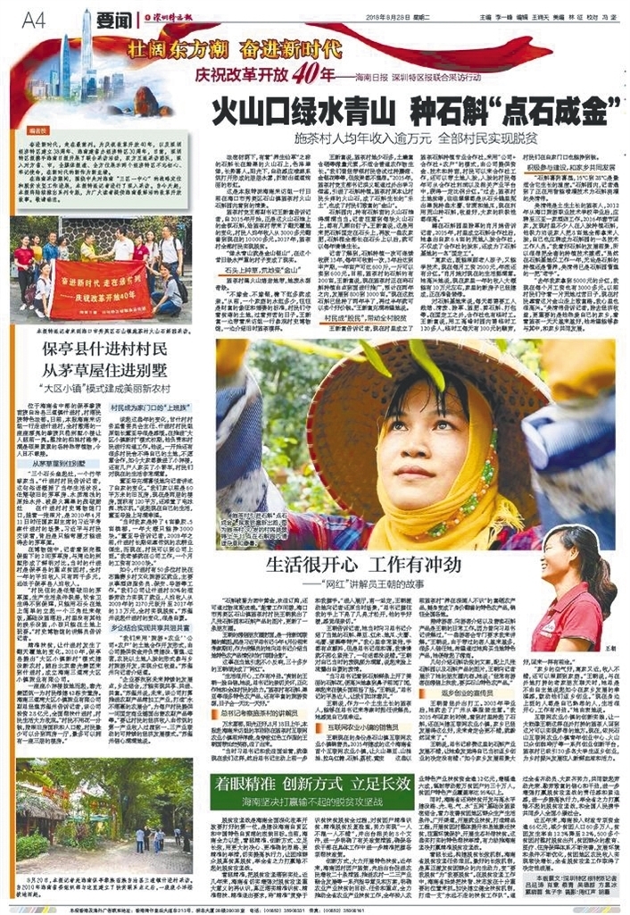 8月28日,《深圳特區(qū)報》推出了“壯闊東方潮奮進(jìn)新時代”慶祝改革開放40年——《海南日報》《深圳特區(qū)報》聯(lián)合采訪行動首期報道。首期報道通過通訊、評論等形式,以點(diǎn)帶面,展示了海南全力打贏脫貧攻堅戰(zhàn)取得的成就。