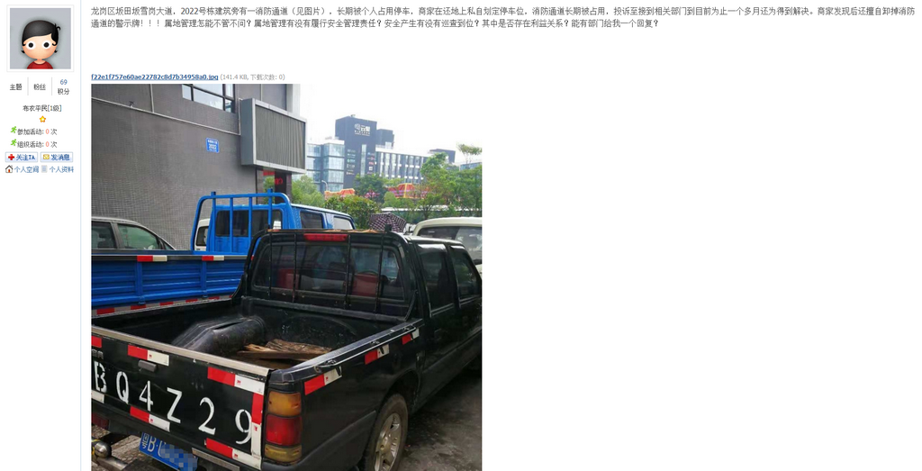 深圳新聞網11月22日訊(記者劉婷)隨著私家車數量的增多,停車越來越難,而亂停車的現象也日益增多。近日,有網友“hepingshijie”在深圳論壇發(fā)帖吐槽,坂田坂雪崗大道2022號棟建筑旁一消防通道,長期被私家車占用,存在嚴重的安全隱患。(網帖地址:https://szbbs.sznews.com/thread-3823312-1-1.html)