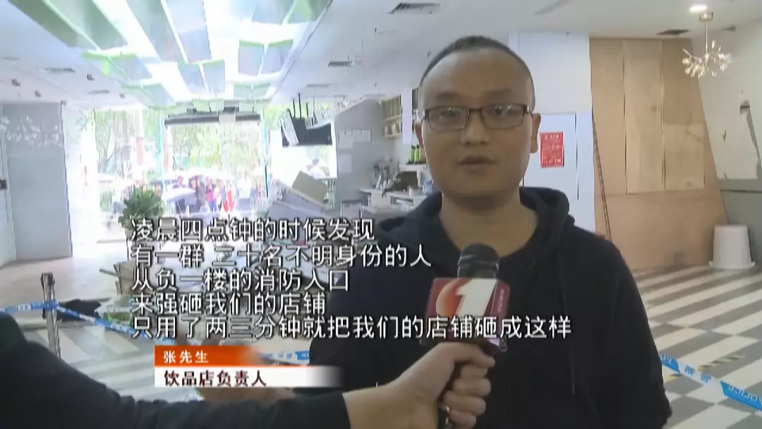 今年4月份,張先生和朋友在深圳南山世紀假日廣場一樓開了一家飲品店,地段這么好,生意自然也不會差。不過,就在今天凌晨,一群不明身份的人員突然把他們的飲品店給砸了。