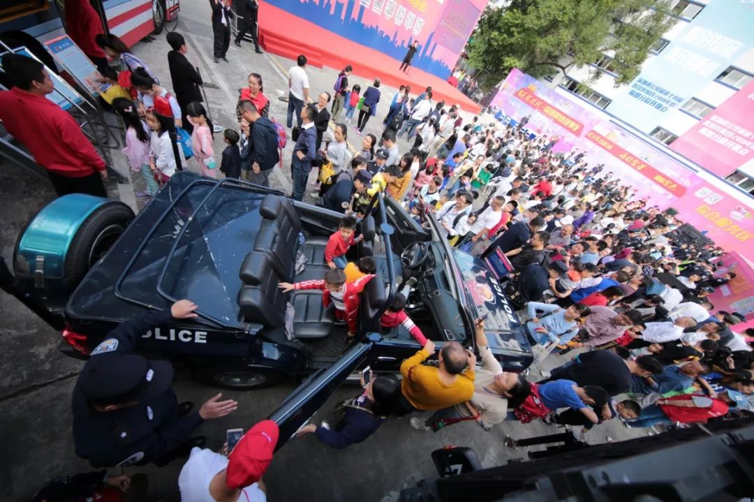 防暴盾牌、槍支警械威武霸氣,隊列棍術(shù)、擒拿格斗輪番上陣。很多人興致勃勃地穿戴警用裝備,頭戴鋼盔、身穿警服,登上反恐敞篷車拍照留念,圓夢警察夢想。