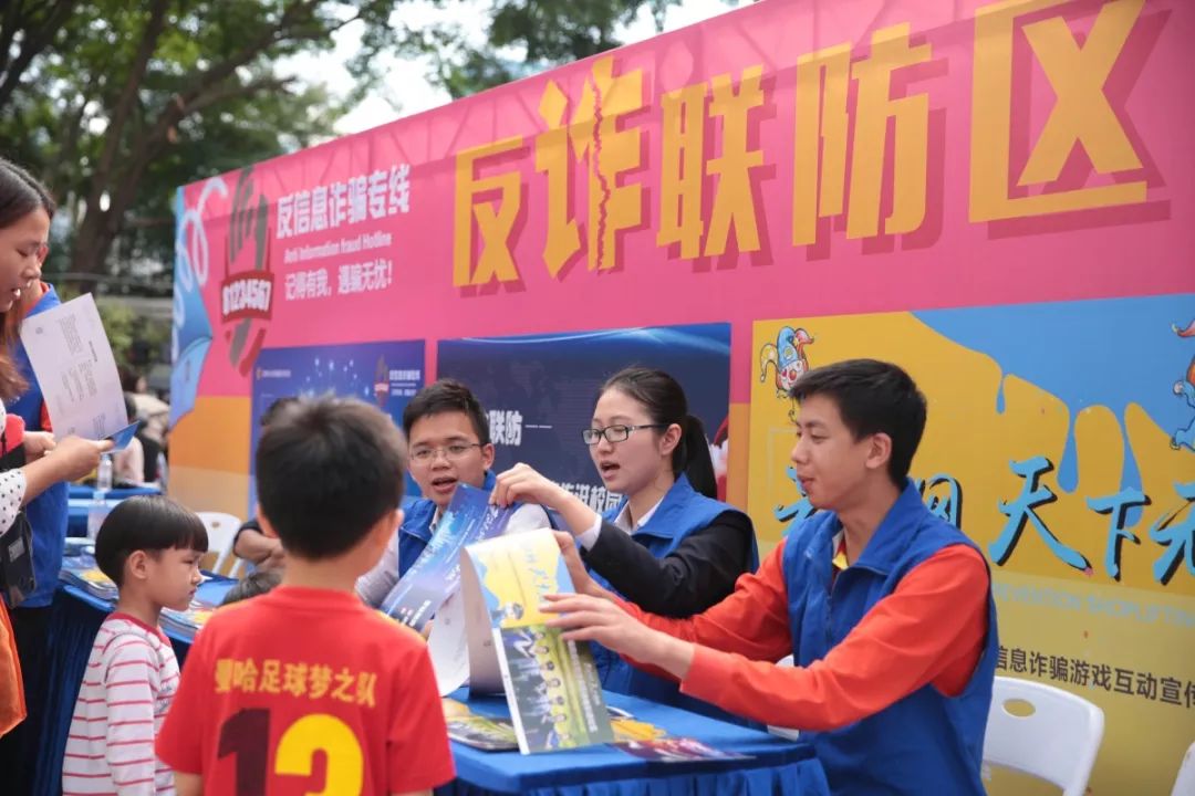福田公安分局反詐騙宣傳團(tuán)隊開展反詐騙宣傳、互動游戲,通過異形展板、反詐騙海報等,向市民防范宣講常見詐騙手段,群眾紛紛拿起手機(jī)“移形換影”自拍,掃一掃“福田警察”二維碼,加入到反詐騙行動隊伍,為“反詐騙”代言,提高防騙技能。同時,分局法制、經(jīng)偵、禁毒、出入境、戶政等部門現(xiàn)場擺臺,民警一一解答群眾提出的各類咨詢問題。