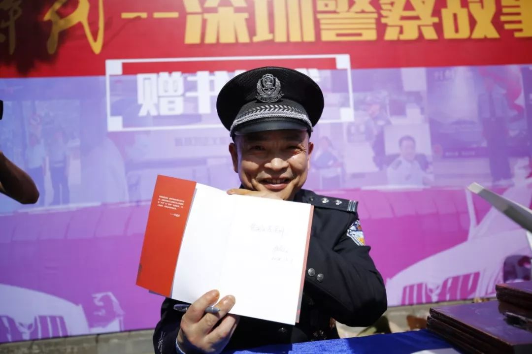 當(dāng)天上午,人民公安出版社副總編李國強(qiáng)、著名作家李迪與市公安局領(lǐng)導(dǎo)來到福田分局開放點(diǎn)現(xiàn)場為深圳公安“每日警星”代表簽名贈書。在贈書點(diǎn),許多市民排起了長隊,領(lǐng)取《英雄時代——深圳警察故事》。