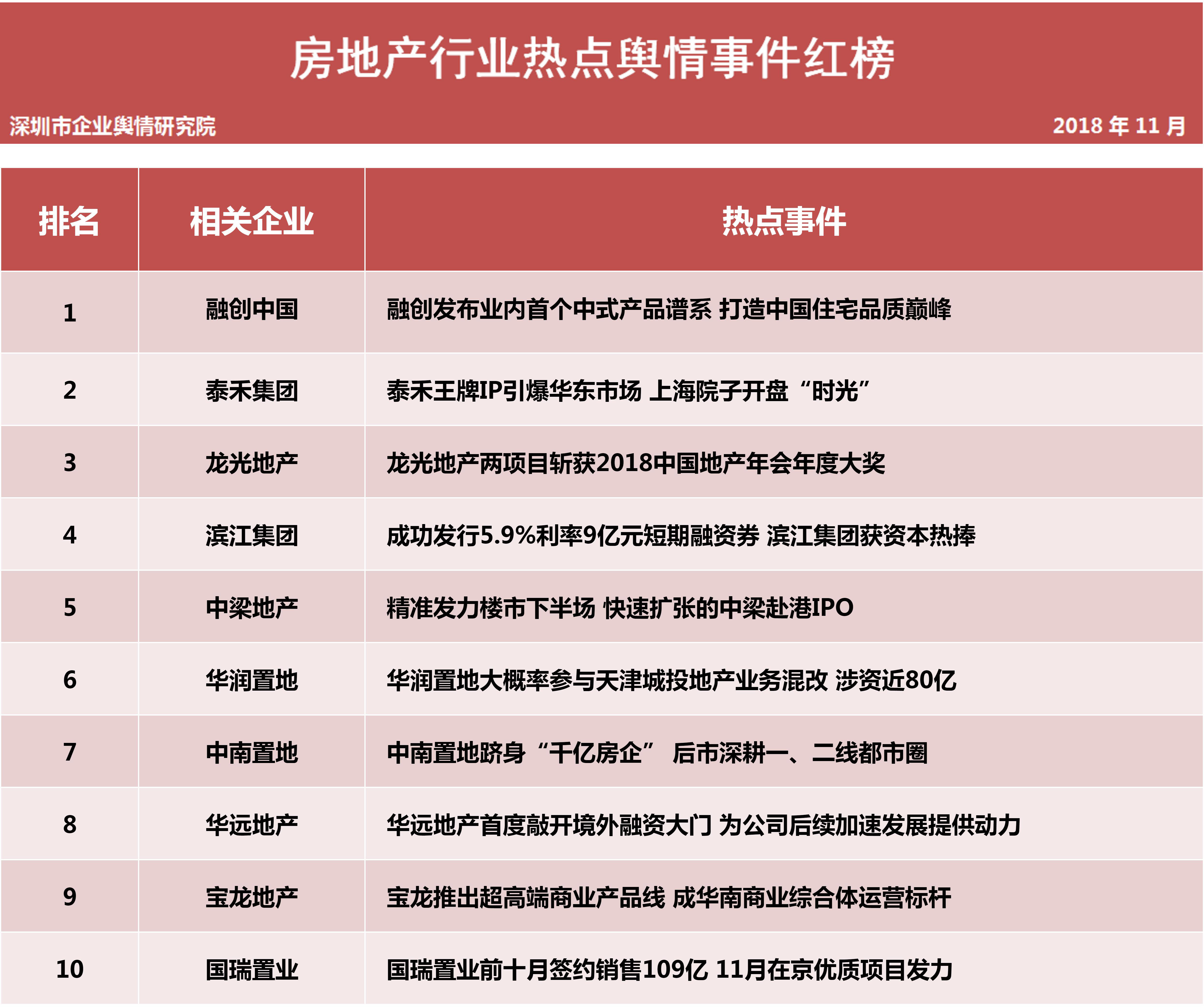 第十批企業(yè)輿情榜單(房地產(chǎn)行業(yè))今日發(fā)布融創(chuàng)中國(guó)好消息不斷萬科“一門未平”又開“一門”