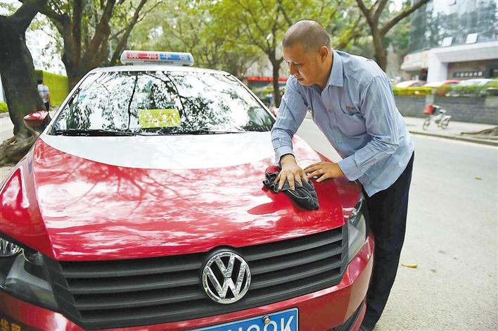 雖然第二天就要把車(chē)交出去,陽(yáng)愛(ài)華還是把他的“老伙計(jì)”擦得干干凈凈。本版攝影:深圳商報(bào)記者 廖萬(wàn)育