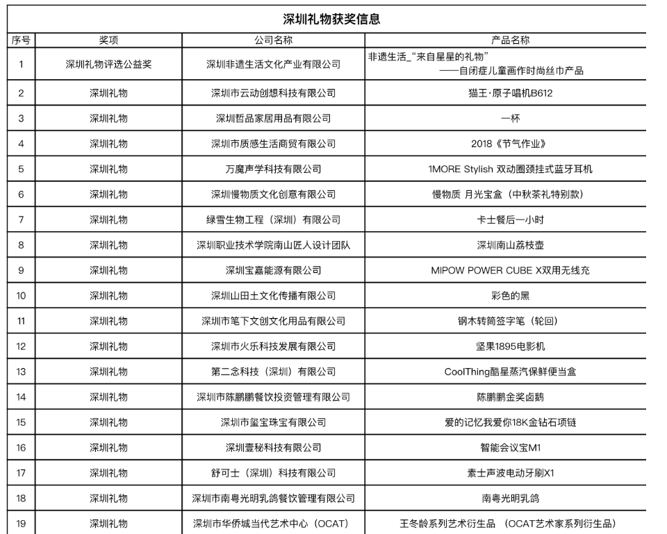 附:深圳禮物獲獎(jiǎng)信息