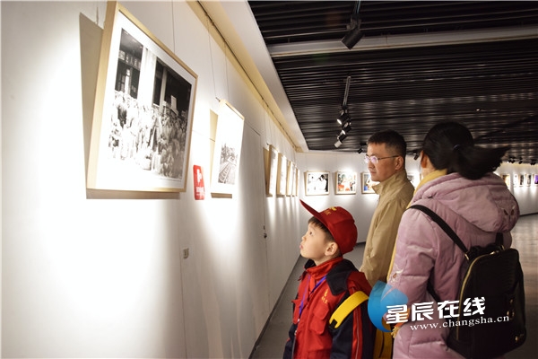 (現(xiàn)場(chǎng)通過(guò)一幅幅新舊對(duì)比的新聞攝影圖片,展現(xiàn)長(zhǎng)沙改革開(kāi)放40年來(lái)的輝煌成就。)