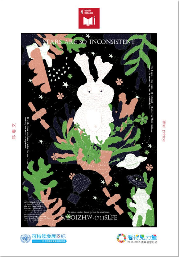 在2018年,項(xiàng)目以征集“SDG青年創(chuàng)意行動(dòng)”的方式,在近3個(gè)多月的征集時(shí)間里,共收到了來(lái)自5個(gè)國(guó)家和地區(qū)的79所大學(xué)的師生以及32家機(jī)構(gòu)/獨(dú)立設(shè)計(jì)師參與投稿的1062件(套)作品,作品類型也不再只是平面設(shè)計(jì),包括數(shù)字新媒體、建筑設(shè)計(jì)以及品牌策劃、交互設(shè)計(jì)軟件、網(wǎng)站搭建等多種表現(xiàn)形式的作品均。經(jīng)知名設(shè)計(jì)師張達(dá)利、黑一烊、宋博淵、鄧遠(yuǎn)健和社會(huì)創(chuàng)新專家馮曉近10個(gè)小時(shí)的三輪現(xiàn)場(chǎng)評(píng)審,共有1件(套)作品獲得“特別大獎(jiǎng)”,10件(套)作品獲得“最佳獎(jiǎng)”,101件(套)作品獲得“優(yōu)異獎(jiǎng)”。在評(píng)選和公示期之后,獲獎(jiǎng)名單已于12月初正式發(fā)布,系列活動(dòng)創(chuàng)意與可持續(xù)發(fā)展論壇和面向全球招募的獲獎(jiǎng)作品聯(lián)合策展計(jì)劃也即將開(kāi)啟。
