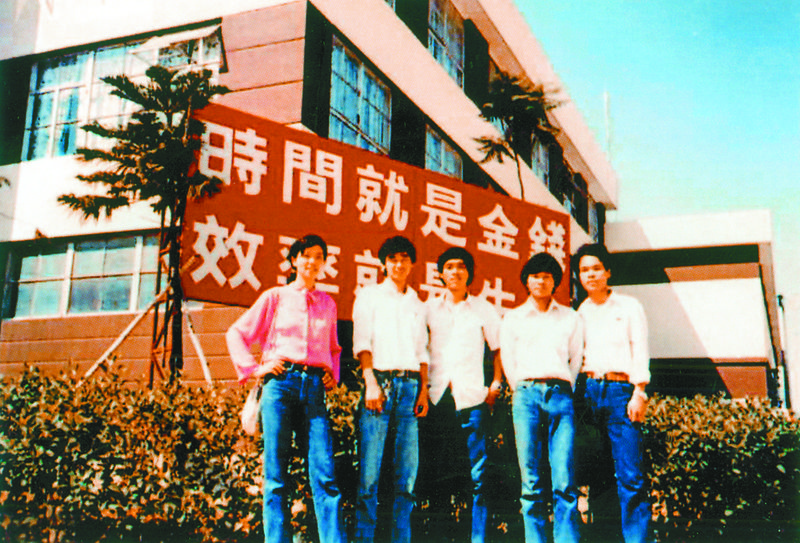 20世紀(jì)80年代初,蛇口青年工在標(biāo)語(yǔ)牌下留影。