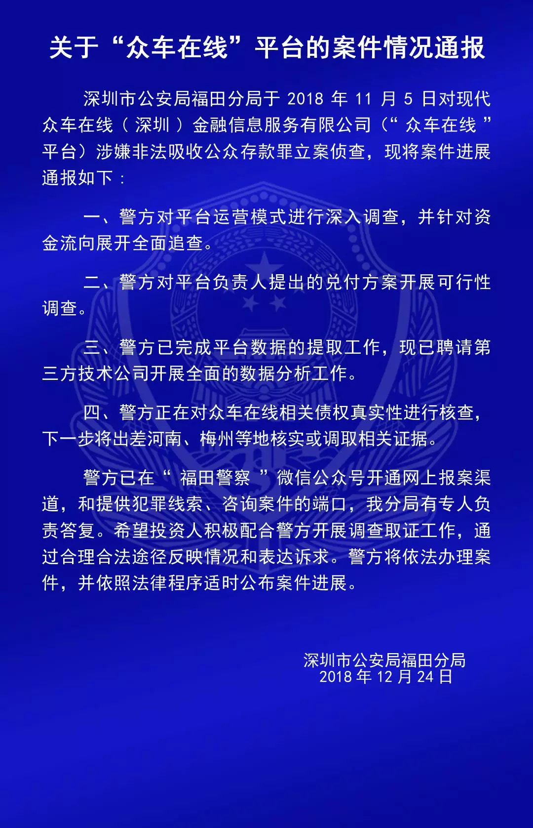 關(guān)于“合拍在線”“壹佰金融”“五星財(cái)富”“眾車在線”“財(cái)富中國”“小零錢”“錢爸爸”“合時(shí)代”和“前金融”平臺(tái)的案情通報(bào)