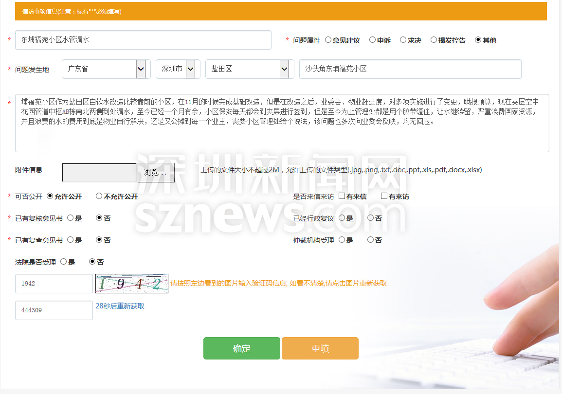 記者通過(guò)鹽田政府在線網(wǎng)站的信訪渠道寫(xiě)信反饋情況,顯示提交成功