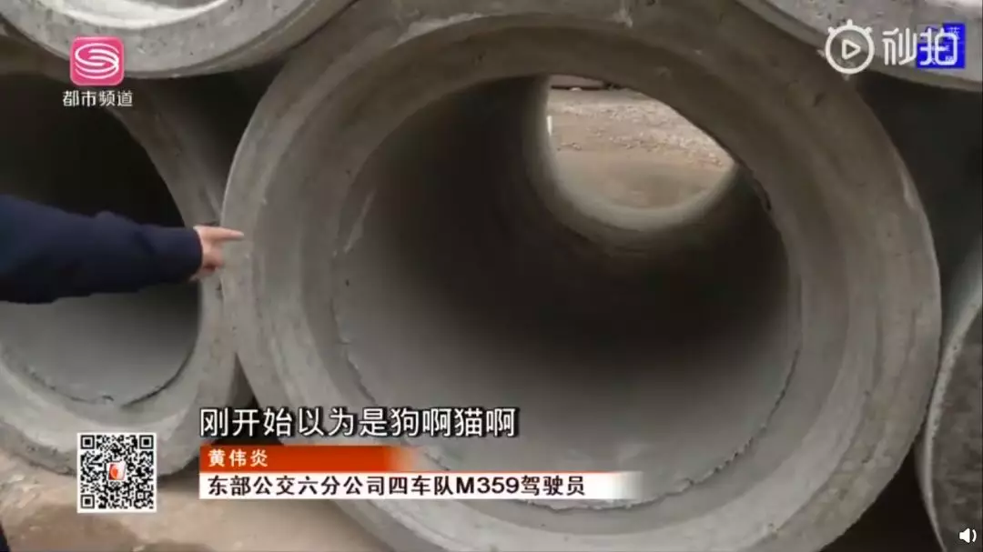 12月22日晚上十點(diǎn)多,東部公交六分公司四車(chē)隊(duì)的公交司機(jī)黃師傅剛剛下班,回家路上經(jīng)過(guò)坪山區(qū)金牌路時(shí),聽(tīng)到擺放在路邊的排污下水管道有聲音便上前查看。
