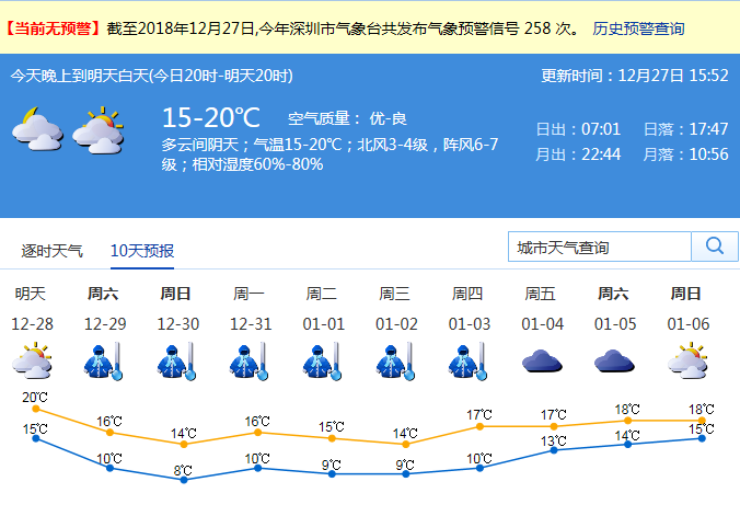 記者從深圳市氣象局了解到,27日晚上到28日白天(今日20時(shí)-明天20時(shí))氣溫在15-20℃,空氣質(zhì)量優(yōu)-良,深圳市以多云間陰為主天;北風(fēng)3-4級,陣風(fēng)6-7級;相對濕度60%-80%。