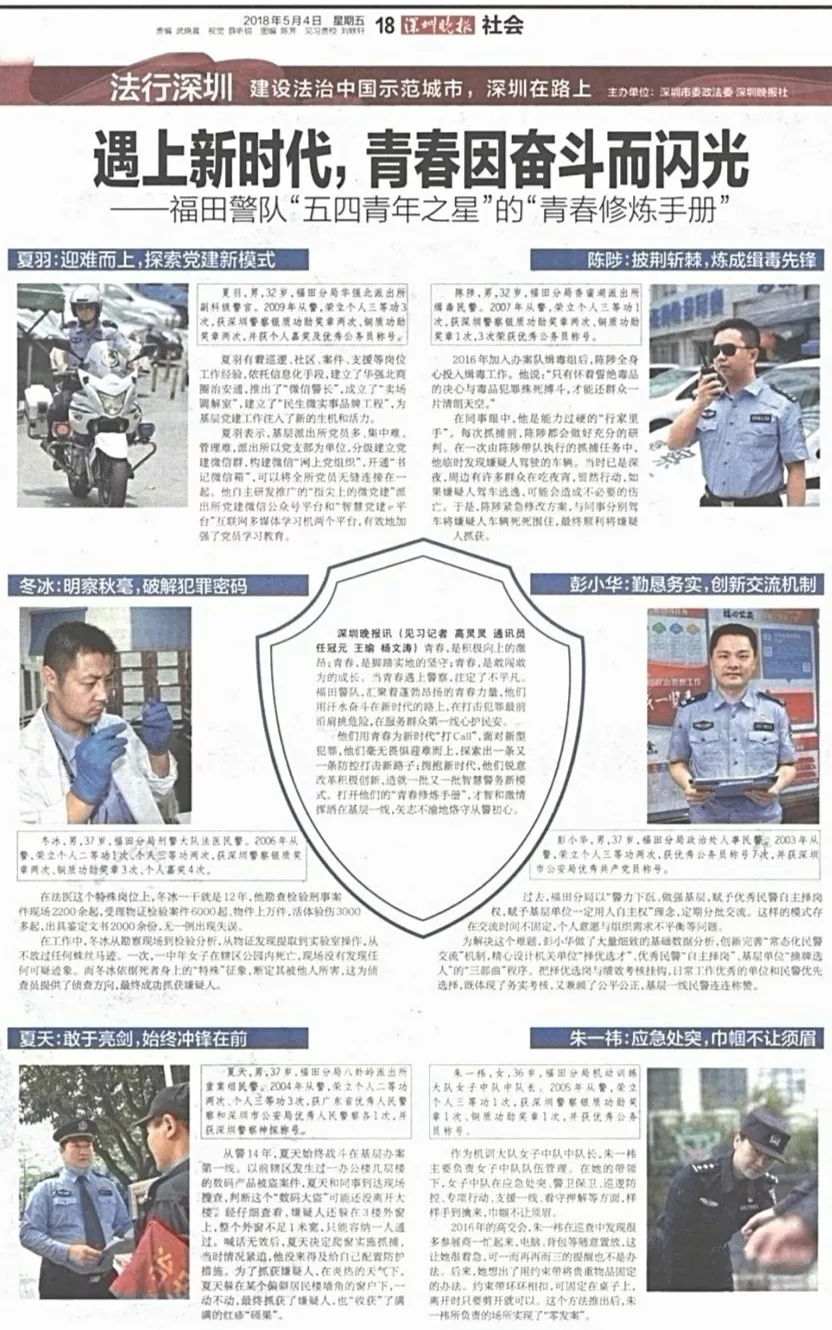 ★★華強北所民警夏羽、香蜜湖所民警陳陟、刑警大隊民警冬冰、政治處民警彭小華、八卦嶺所民警夏天、機動訓練大隊民警朱一祎被評為福田警隊“青年之星”,他們是青年民警的優(yōu)秀代表,青春在奮斗中閃光,在砥礪中前行,是警隊的明天與希望。