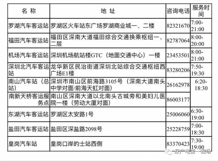 深圳市客貨運(yùn)輸服務(wù)中心有限公司所屬羅湖、福田、南山、東湖、鹽田、皇崗、機(jī)場、深圳北等汽車站及所屬客運(yùn)服務(wù)點(diǎn)將于1月5日起全面預(yù)售2019年春運(yùn)的汽車票。旅客可通過微信公眾號(hào)“深圳汽車客運(yùn)”、網(wǎng)站www.88895000.com等渠道查詢、訂購票。