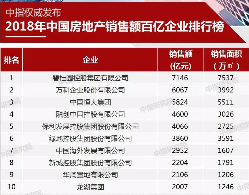 2018年房企銷售百億榜發(fā)布:萬(wàn)科、恒大位列第二、第三