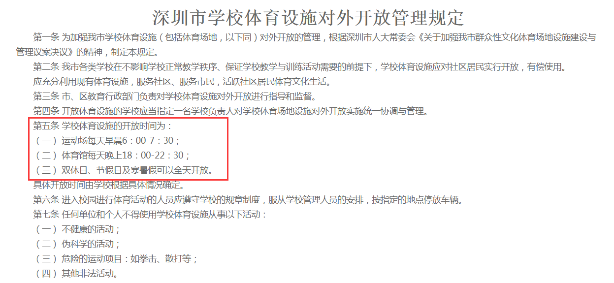 《深圳市學校體育設施對外開放管理規(guī)定》部分內(nèi)容