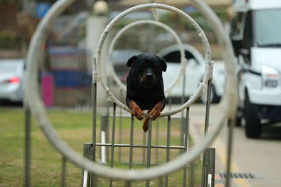 大家好,我是威威,今年5歲,相當(dāng)于人類的壯年。如果有一種警犬能夠做到不怒自威,那就是我——羅威納犬。我長得豹頭環(huán)眼,烏黑間黃,脖粗體健,動(dòng)作迅猛,氣勢強(qiáng)悍,是世界上最具勇氣和力量的犬種之一,所以訓(xùn)導(dǎo)員譚學(xué)明給我取名威威。