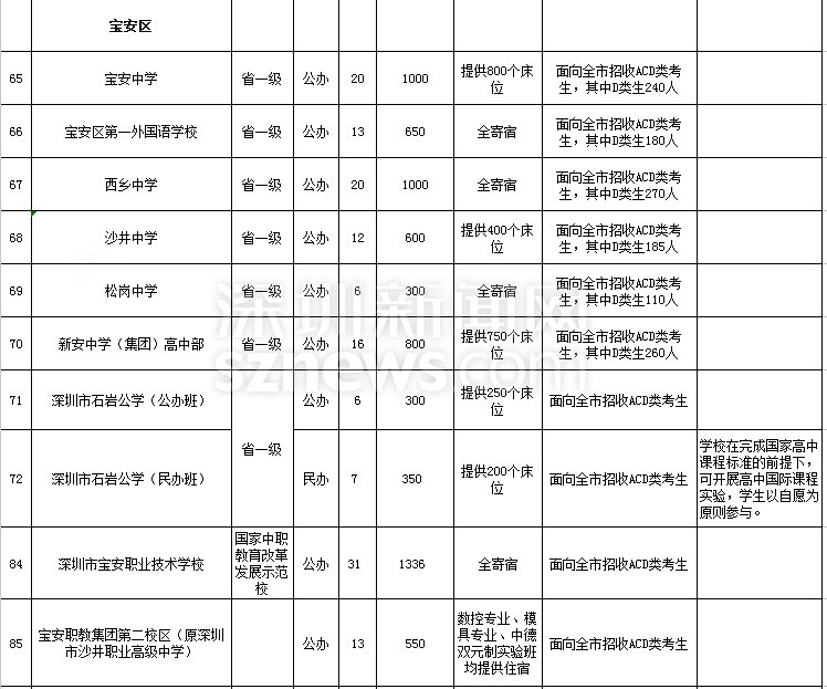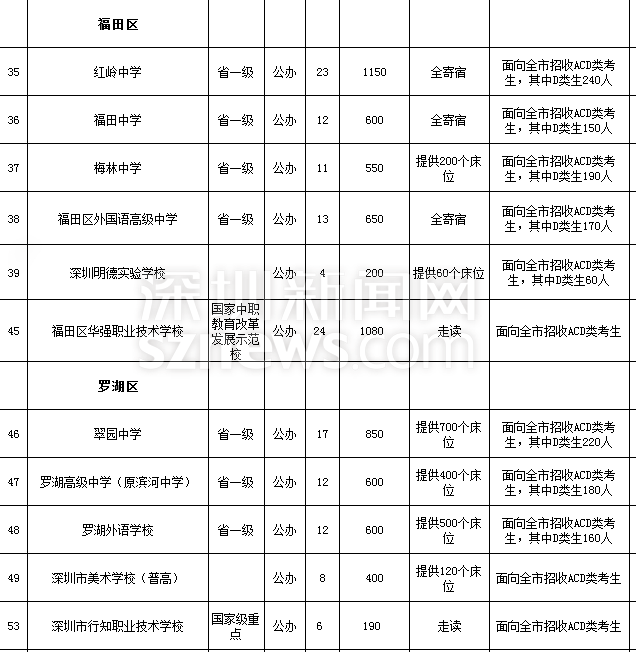 記者查閱了深圳市教育局2018年發(fā)布的高中階段學(xué)校招生計(jì)劃表。除去民辦學(xué)校,深圳共有71所公辦高中階段學(xué)校(含普高、職高)參與招生,其中普高占50所,提供34379個(gè)學(xué)位。