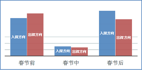 根據(jù)往年春節(jié)出深道路流量統(tǒng)計(jì),每日10時(shí)前后出深道路壓力開始上升,狀況持續(xù)到17時(shí)左右。