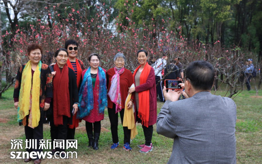 一市民在桃花前留念許久,只希望拍到一張合適的照片