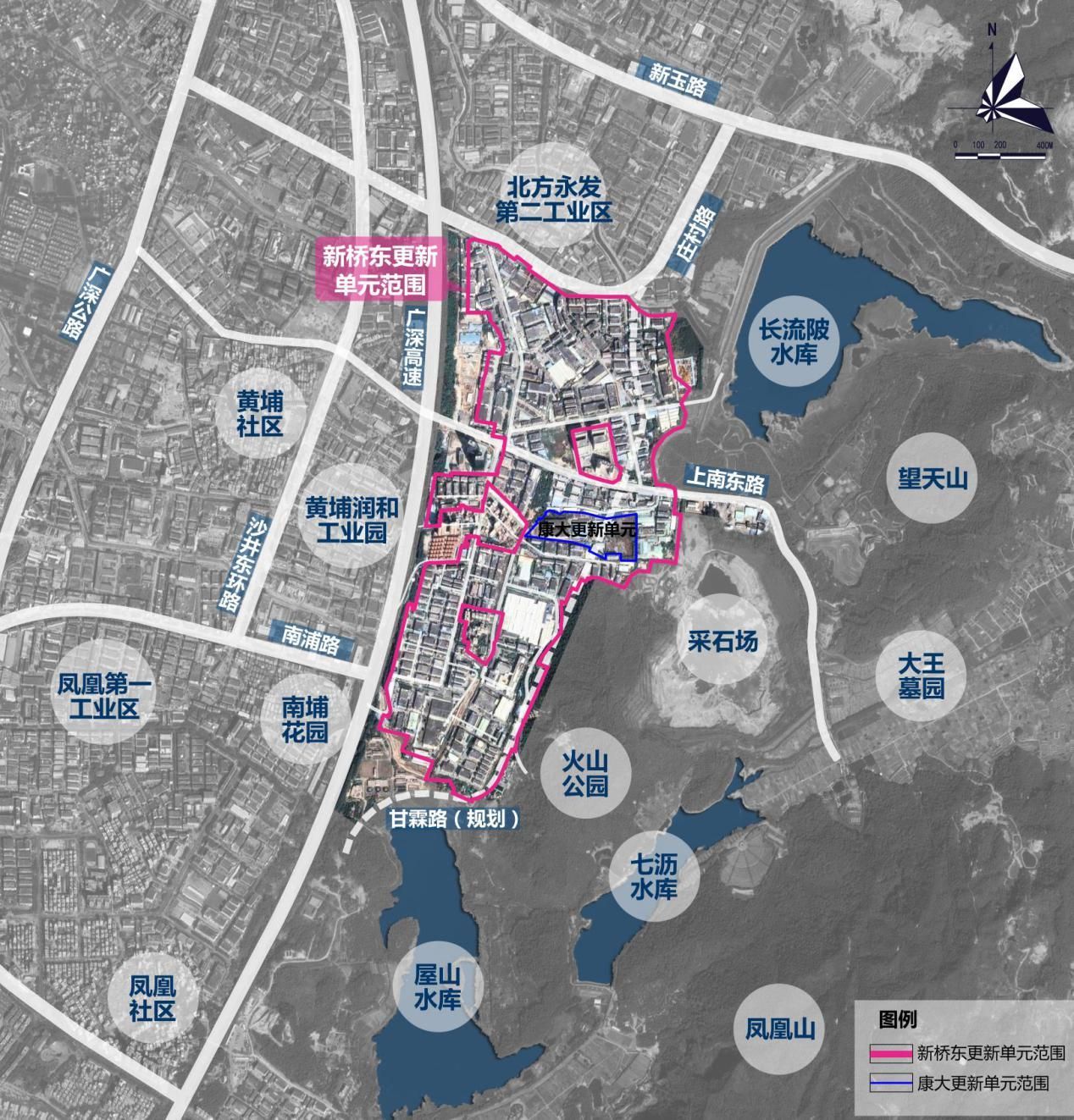 記者了解到,新橋東片區(qū)重點更新項目也是全市首個“平方公里”級更新單元。項目詳細城市設(shè)計范圍為北至莊村路,西至廣深高速,南部和東部以甘霖路和現(xiàn)狀建設(shè)邊界圍合區(qū)域,由新橋東片區(qū)重點城市更新單元范圍和康大工業(yè)基地城市更新單元范圍構(gòu)成,面積約1.6平方公里,其中拆除用地面積為1.27平方公里。