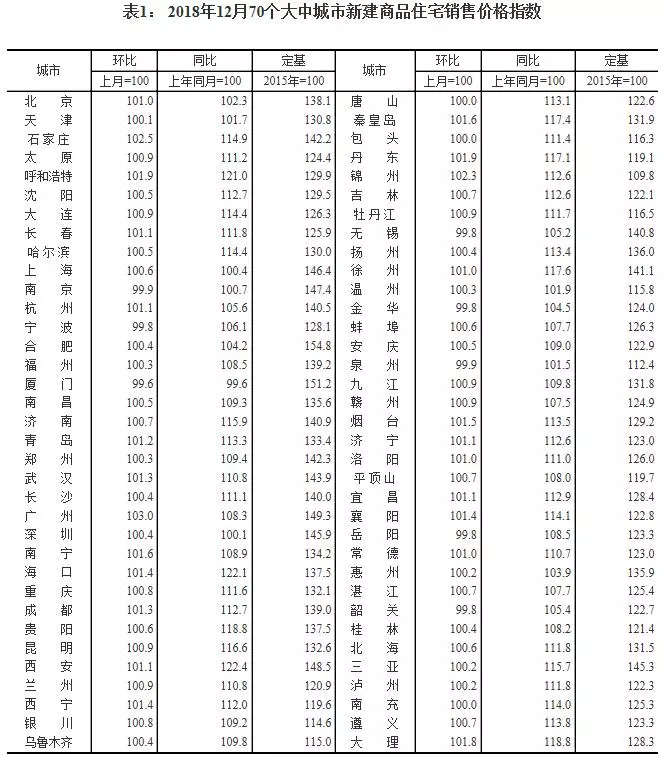 16日,國(guó)家統(tǒng)計(jì)局公布的“2018年12月份70個(gè)大中城市商品住宅銷(xiāo)售價(jià)格變動(dòng)情況”顯示,雖然一線(xiàn)城市新房?jī)r(jià)格年底有所上漲,但二三線(xiàn)城市房?jī)r(jià)保持穩(wěn)定。