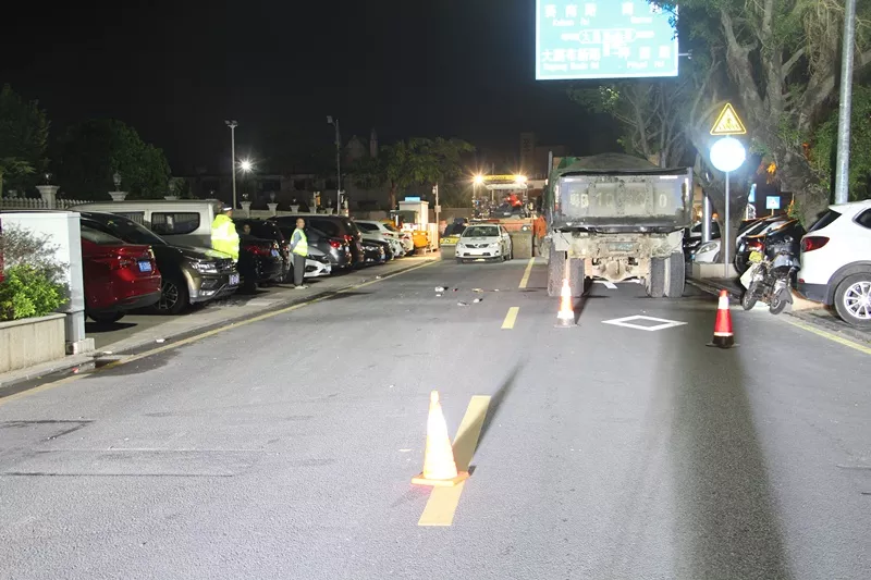 2018年11月27日凌晨2時(shí)21分許,龍某駕駛無(wú)號(hào)牌二輪電動(dòng)車沿大鵬新區(qū)大鵬街道建設(shè)路由北往南方向行駛至華興新村路段時(shí),車頭徑直撞上了停放在道路旁的粵B號(hào)牌輕型自卸貨車車尾,頓時(shí)龍某連車帶人摔倒在地。