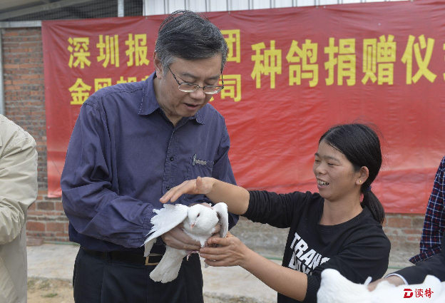 根據(jù)報(bào)業(yè)集團(tuán)“因戶制宜一戶一策”“一個(gè)黨支部結(jié)對(duì)一戶貧困戶”的安排,鐘仿明選擇養(yǎng)鴿脫貧,兩年多來,集團(tuán)金風(fēng)帆物業(yè)公司共計(jì)為他送來四批480對(duì)種鴿,還請(qǐng)來深圳光明農(nóng)場(chǎng)的技術(shù)員,對(duì)他進(jìn)行技術(shù)培訓(xùn)?!?80對(duì)種鴿全部成活!”1月20日下午,看到親自來送種鴿的陳寅等報(bào)業(yè)集團(tuán)領(lǐng)導(dǎo),鐘仿明拿出一面錦旗,非常激動(dòng)地說:“感謝黨的好政策,感謝深圳報(bào)業(yè)集團(tuán)的真心幫扶!”